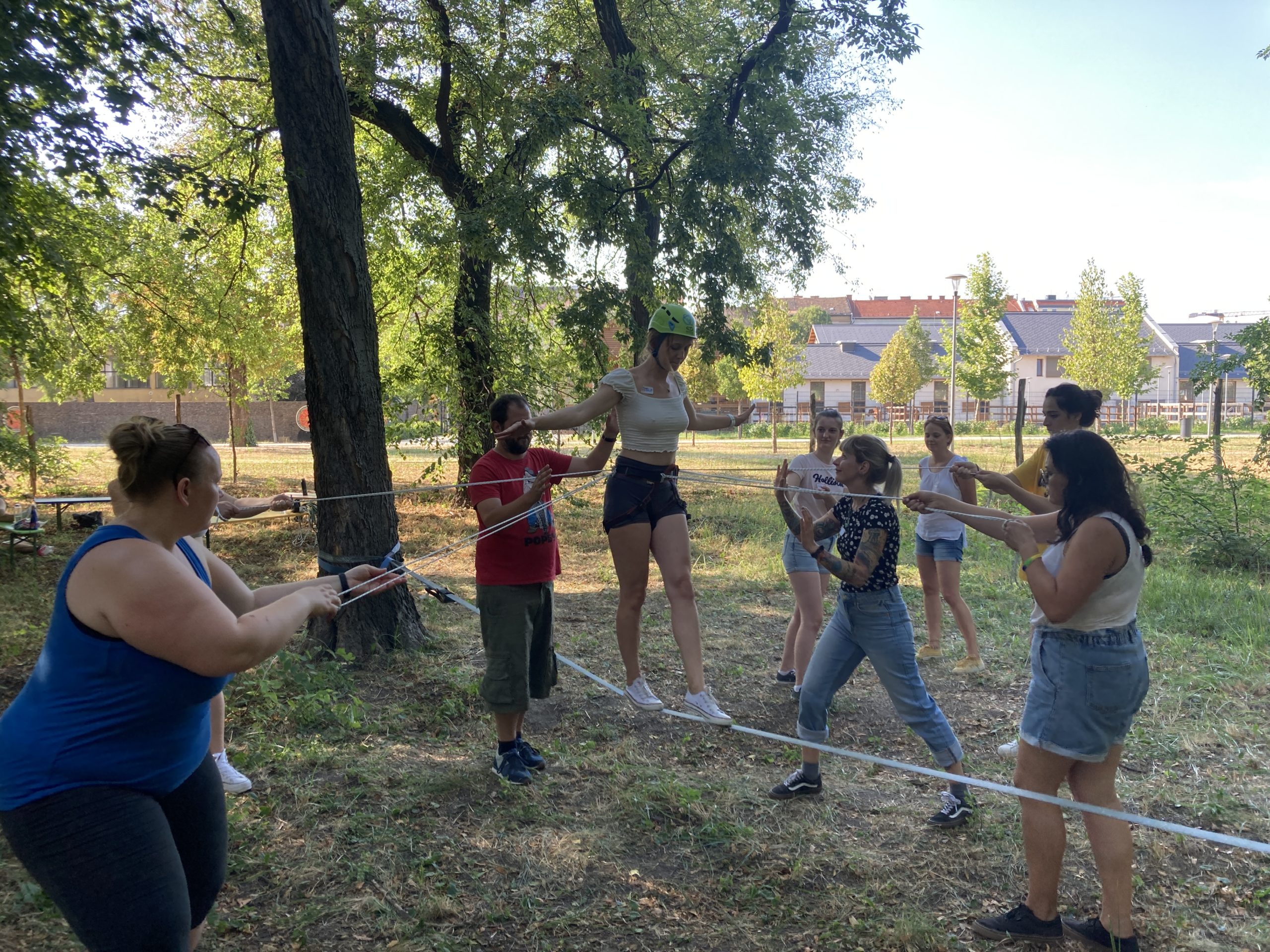 There was an outdoor training day too. We went to an adventure park and the participants tried art therapy and outdoor training elements. The focus was on self-knowledge, trust in each other, thinking together, planning and playing.